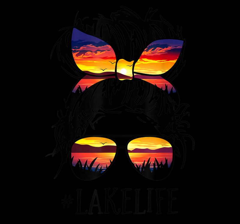 Lake Life Shirt Messy Bun Girls Women Mom Mother Grandma