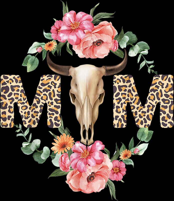 Mothers Day Cow Bull Mom Skull Boho Country Gift Women T Shirt